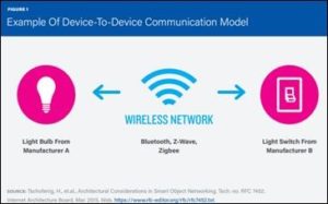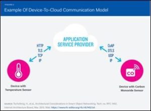 IoT devices must have sensors, which allow them to collect data from their environment. In addition, the devices must have a connection to transmit the data, and be uniquely identifiable, which is usually done through an IP address. IoT devices use multiple methods of communicating and transmitting their data, such as two devices exchanging data with each other using a Bluetooth connection. Other IoT devices can connect directly to an internet cloud-based service to exchange data, usually over Ethernet or Wireless Internet (Wi-Fi). The diagrams below, courtesy of the Internet Architecture Board, outline these two methods.
