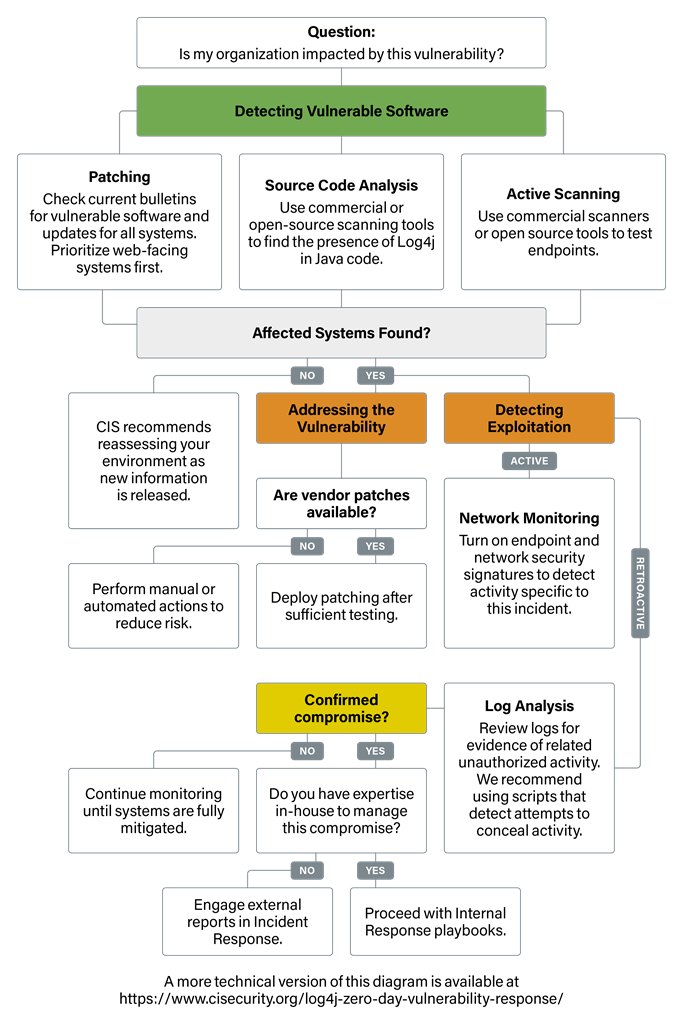 The accompanying flowchart will help organizations assess and address the Log4j vulnerability.